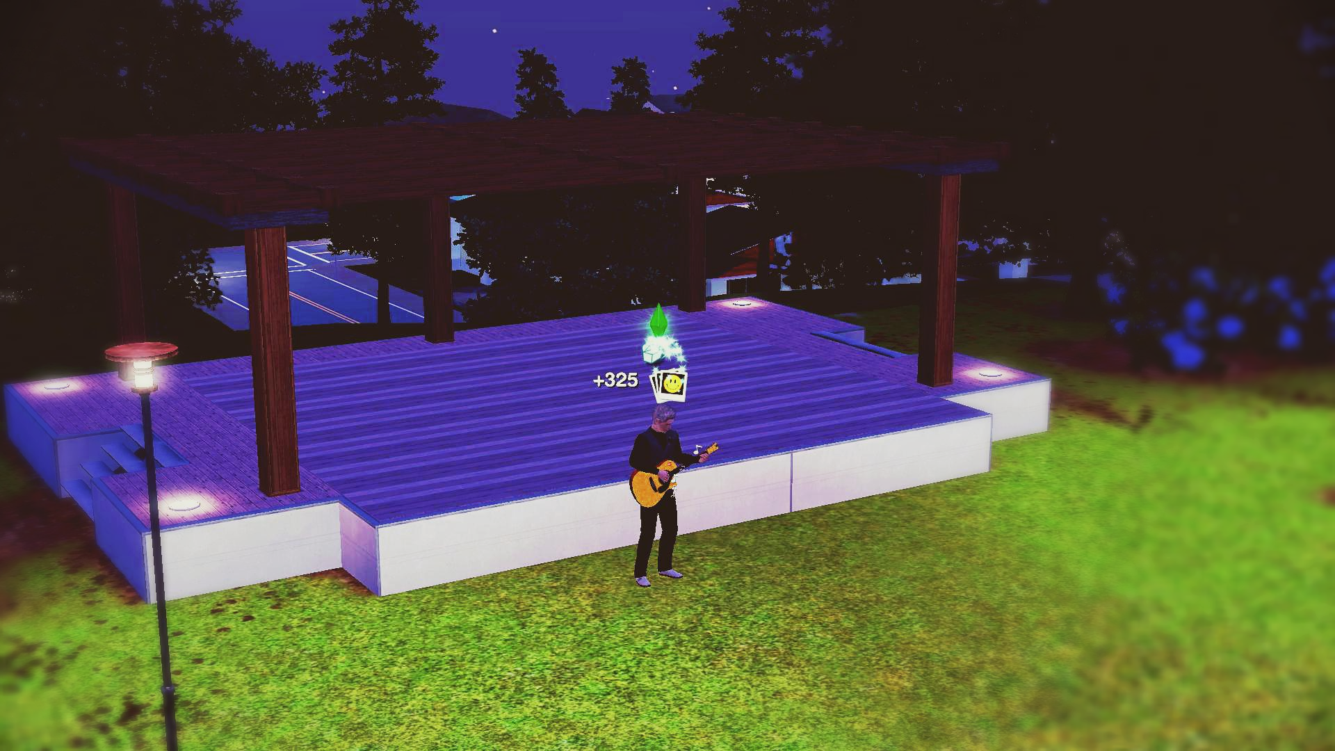 무대 앞에서 기타를 친다!