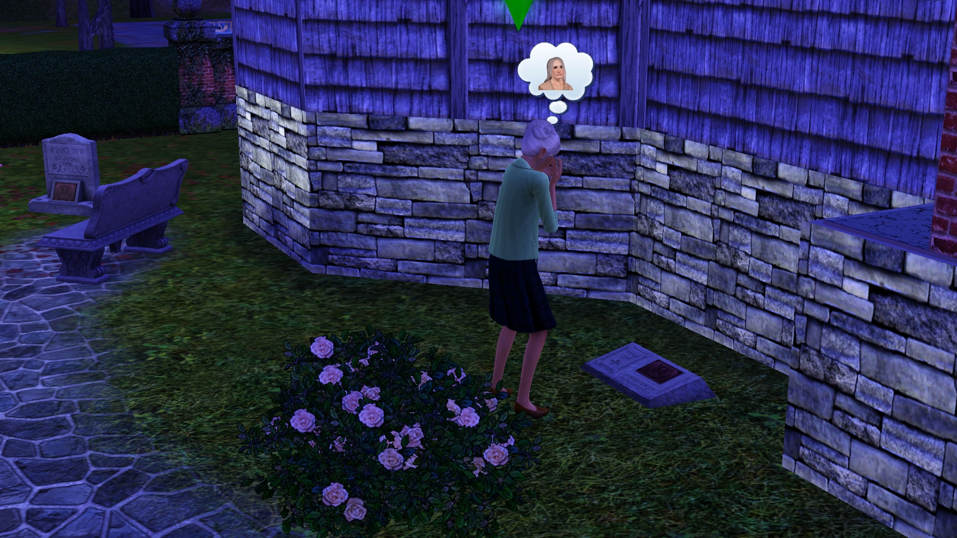 그리고 구석의 묘비 근처에 여자 한 명이 서 있었다.